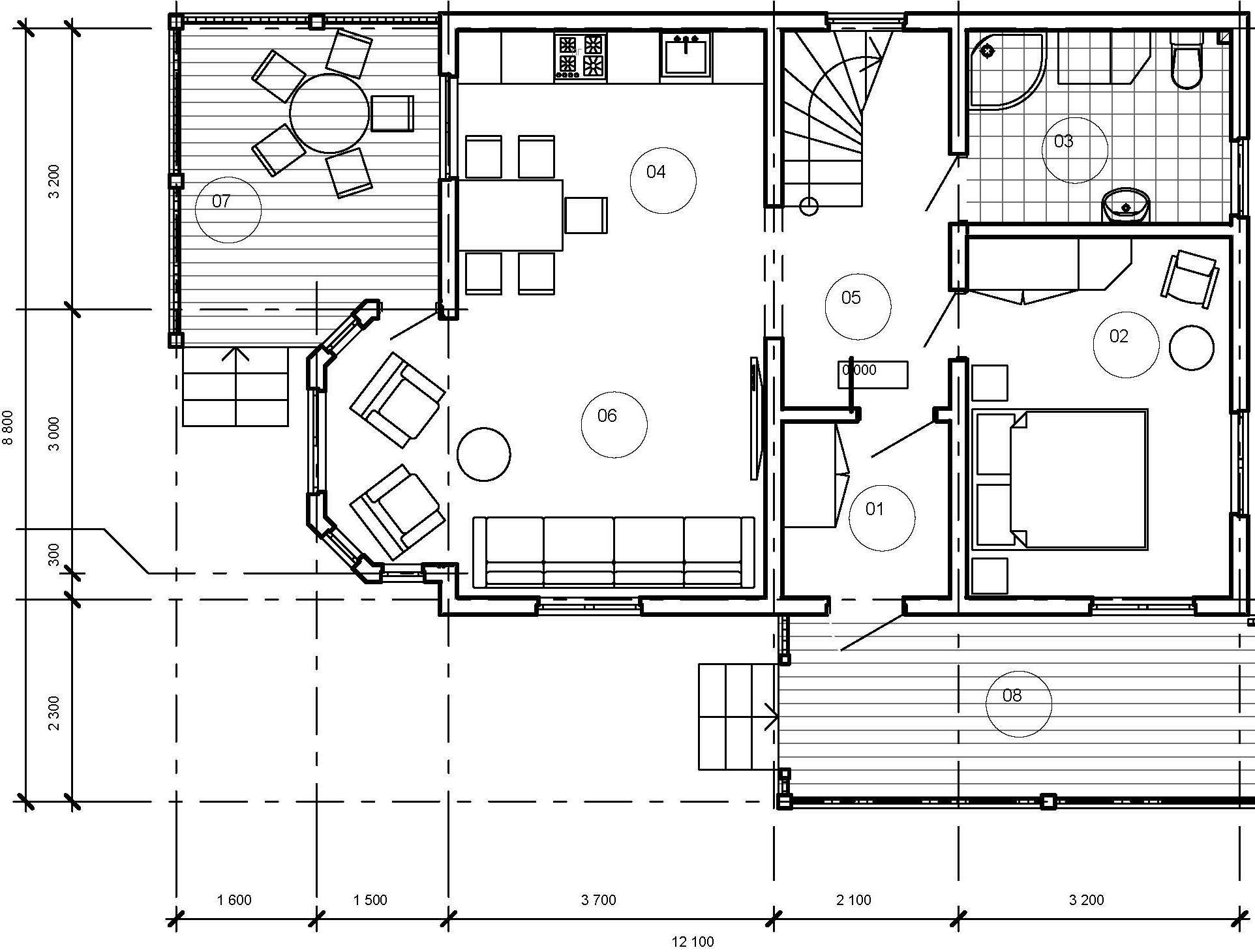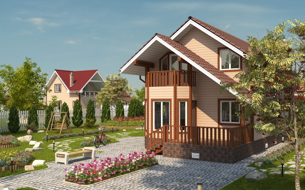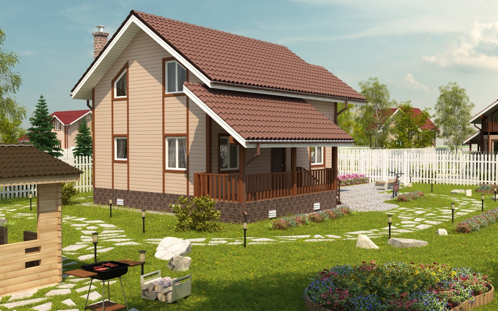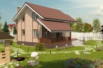 Одноэтажный жилой дом с мансардным этажом. Самый большой и яркий дом этой серии. В этом доме мы совместили все то, что хотели бы иметь в своем загородном доме. Просторная веранда, выход из кухни на открытое патио, эркер в гостиной.