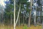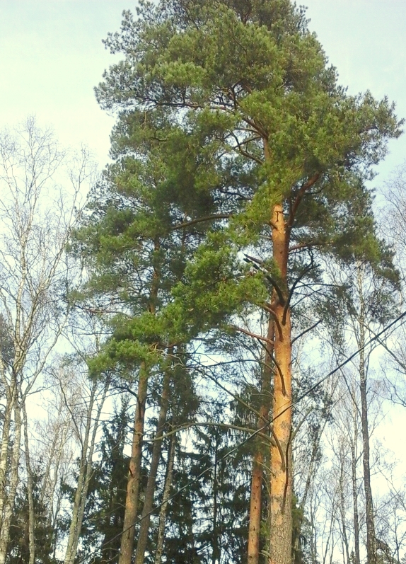 Лесные деревья: корабельные сосны, березы.