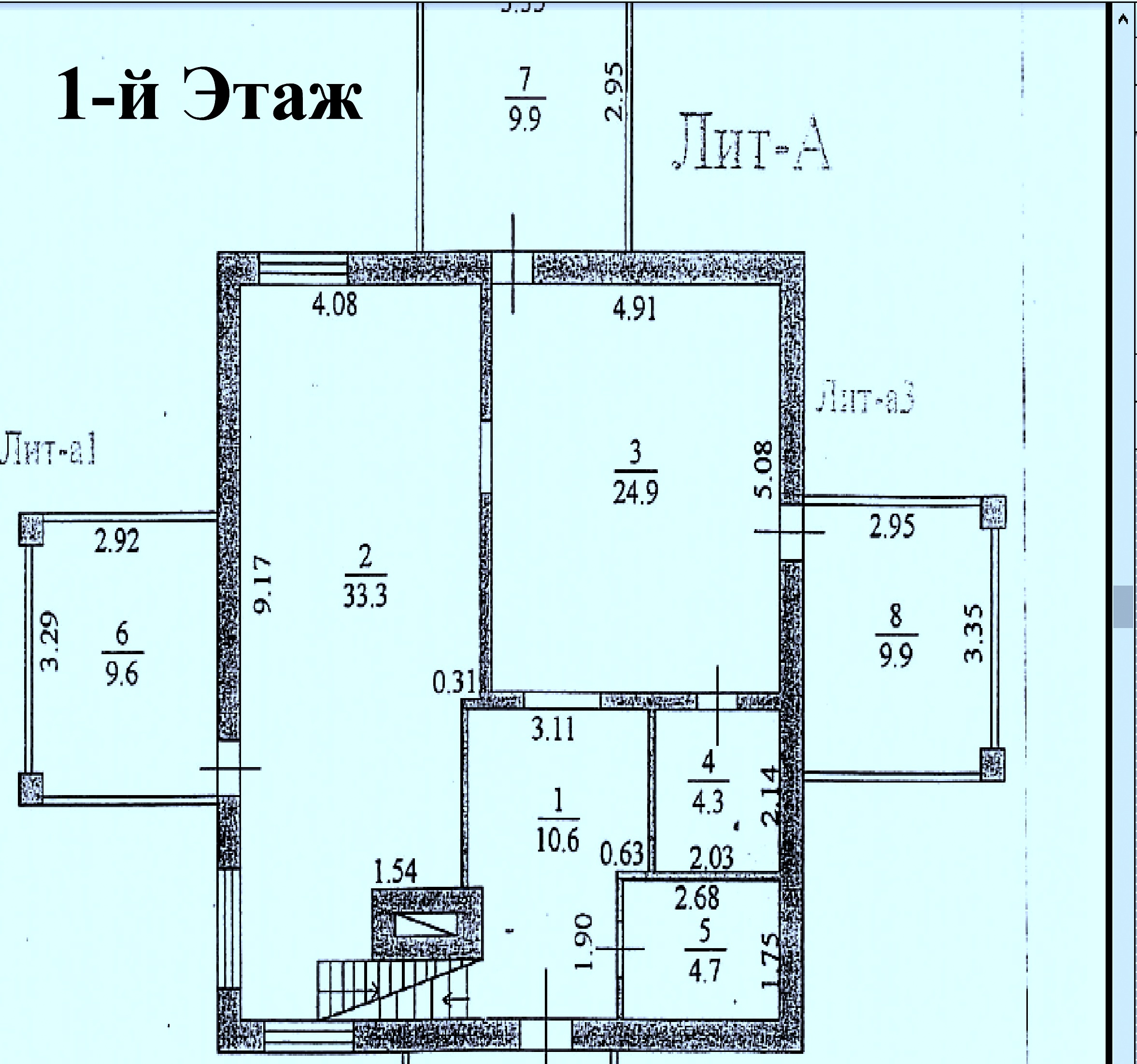 1-й этаж: коридор, комната 33 м2, санузел, гардеробная, комната 25 м2, гардеробная, Остекленная веранда. Подсобные помещения 2-й этаж: санузел, комнаты 24 м2, 29 м2, 9 м2, санузел, 4 остекленные веранды.
