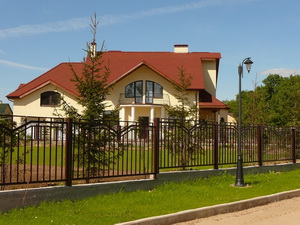 Поселок огорожен по периметру и имеются ограждения между участками.