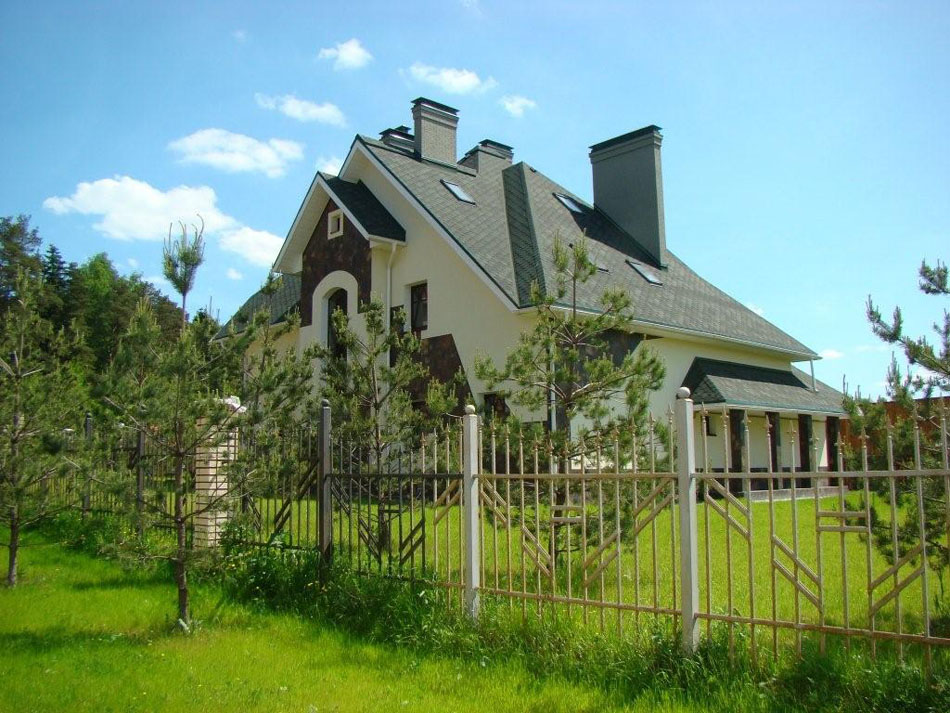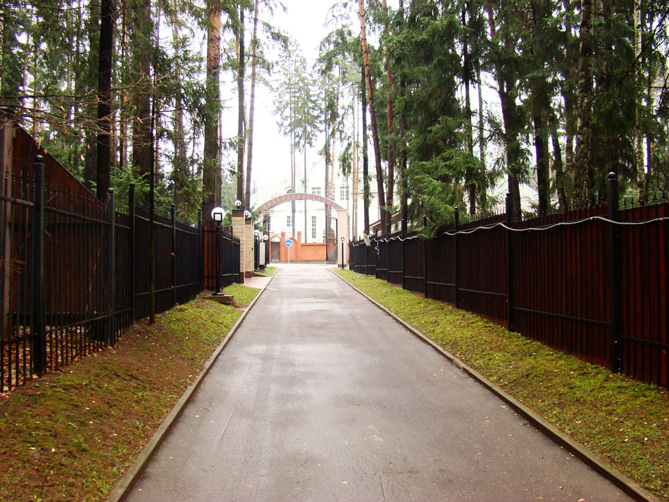 Территория коттеджного поселка огорожена кованым забором. Участки друг от друга отделены бельгийским металлическим забором, с гарантией в 10 лет от коррозии.