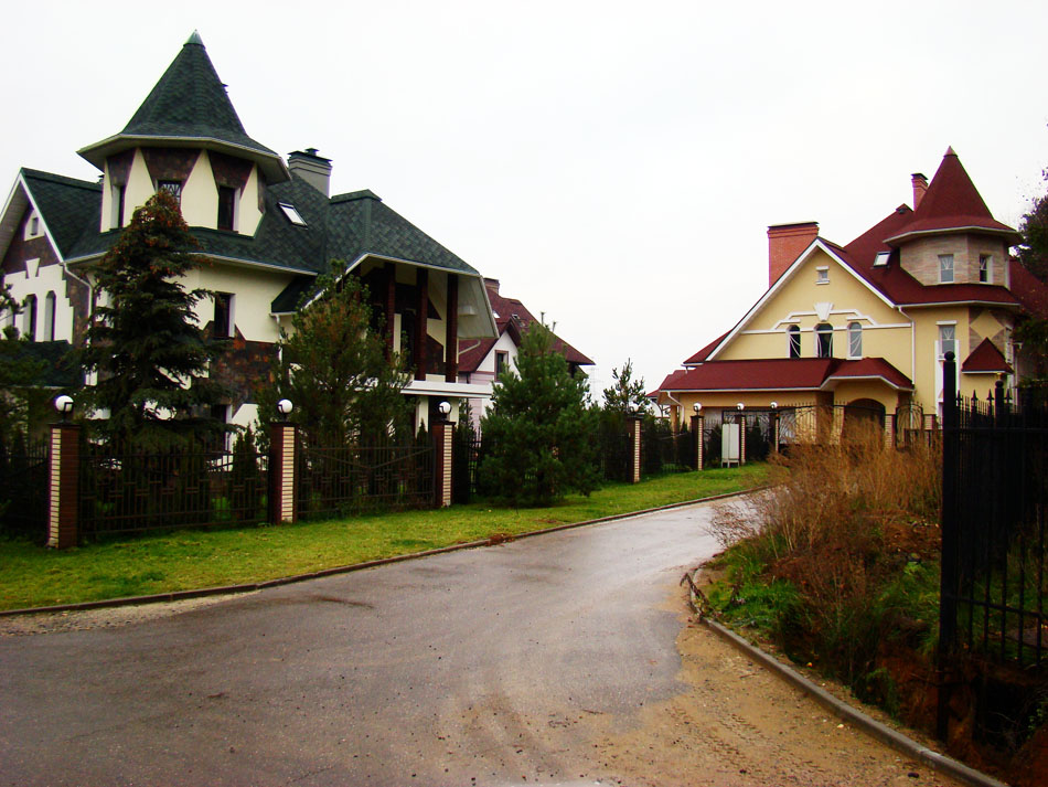 Уникальные кованые ворота перед каждой усадьбой, открываются автоматически.
