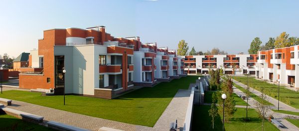 Комплекс находится недалеко от шоссе. Расположился он на территории площадью 6 га. Всего в нем находится 110 коттеджей. Дома имеют одну архитектурную концепцию.